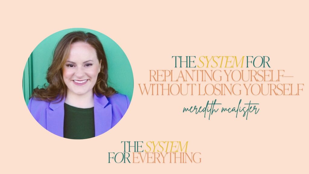 Julie: Welcome back to the System for Everything podcast. Today’s system tip. Moving to a new city. Join a hiking group even though you hate hiking. Say yes to awkward coffees and find a mediocre taco place to defend with your whole chest. Today my guest is Meredith McAllister. What happens when you move across the country?